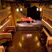 This particular box was a defunct twenties sign factory until Serge Becker (La Esquina, 205) joined theater folk Richard Kimmel, Randy Weiner, and Simon Hammerstein in reimagining it as an intimate Hammerstein Ballroom (which was built by Simon’s grandfather Oscar). So now, up a curving, Persian-rugged staircase is a mezzanine of armchairs gathered around a display of antique bottles exhumed during construction. The newly New Orleans–style balustrade overlooks bejeweled chandeliers and a mirrored back bar equipped with towering molded cabinets. The small bar upstairs caters to those dining in the velvet-curtained balcony booths; downstairs, dinner unfolds in spacious U-booths a step up from the parquet floor. The state-of-the-art stage is graced by circus stars, human oddities, and avant-garde thespians from France, Russia, and even Brighton Beach—a mix as fanciful and incongruous as the layered wallpaper of cherubs, Chinese fighting fish, and flappers.