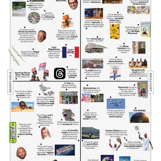 Robert Moses and Jane Jacobs represent irreconcilable visions of urbanism, and praising one meant demonizing the other—until a pair of exhibits replaced caricatures with nuance. A three-part extravaganza at the Museum of the City of New York, Columbia University, and the Queens Museum made a case that Moses’s damage (the Cross Bronx Expressway) was inseparable from the good he did (the Cross Bronx Expressway again: Those cars coming off the George Washington Bridge have to go somewhere). Now the Municipal Art Society has mounted a modest exhibit exhorting New Yorkers to observe the city as closely as Jacobs did. Even Moses wouldn’t scoff.