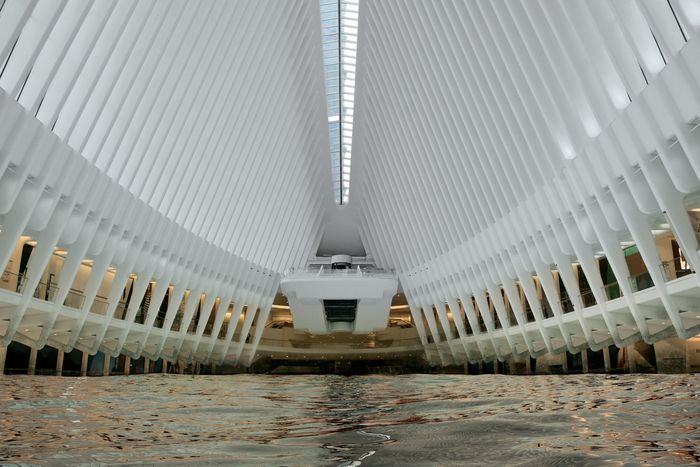 The redeveloped World Trade Center site is among the city’s most at risk; here, a rendering of the flooding of Santiago Calatrava’s Oculus. Photo: MDI Digital/Marcus Baker/Alamy Stock Photo